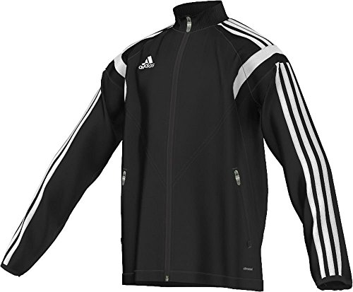 Product Description The Adidas Men's Condivo 14 Training Jacket is perfect for training in. Product Features: Jacket Full zip Ribbed stand-up collar Front zip pockets Ventilated climacool keep you dry and cool Elastic binding on cuffs Drawcord on hem Stopper in pocket Stripe inserts on shoulders 100% polyester 0