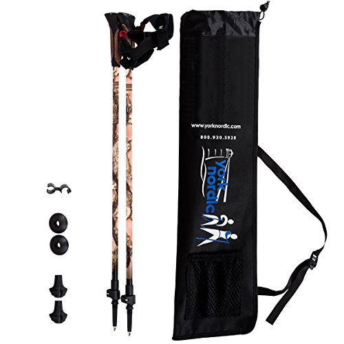Studio : York Nordic Publisher : York Nordic Binding : Misc. Product Description York Nordic poles are a high quality walking poles that combine innovative features with stylish design. Poles are made from high grade lightweight 7075 aluminum and feature one of our 12 unique designs. These have a similar weight to carbon fiber, but are more stable and less wobbly than carbon.