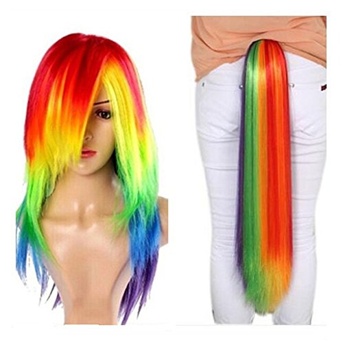 -- Material: 100% Japanese KANEKALON(First-Class Grade and very well made) fiber -- Color: Multi-color -- Texture: Long Straight Wig -- Length: Showing as picture -- Weight: 350g Package Content: