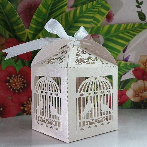 Krismile New Arrival 50 pcs White Bird Cage Laser cut Wedding Candy Box Favor Box Party favor Box