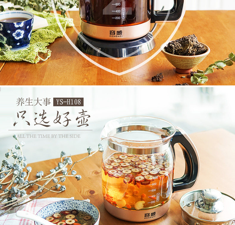 󰄬RW容威YS-H108养生壶 全自动多功能中药煲煎药煮花茶壶手柄触屏