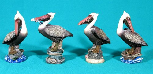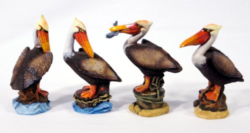 Handpainted Pelican Bird Figurine 4.75" (Set Of 4)