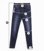 | 尺码 | ①腰围 | ②臀围 | ③大腿围 | ④膝围 | ⑤脚围 | ⑥前裆 | ⑦后裆 | ⑧裤长 | ||