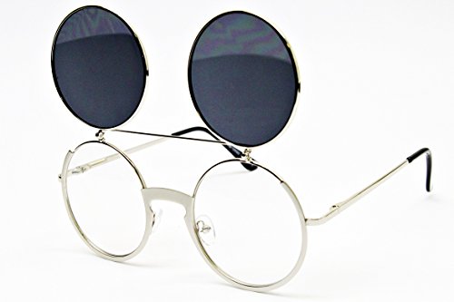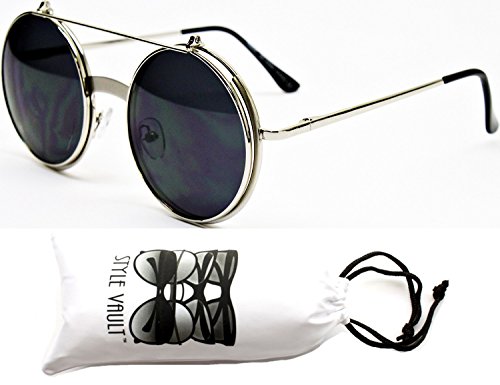 V135-vp Style Vault Round Flip up Django Steampunk Metal Sunglasses