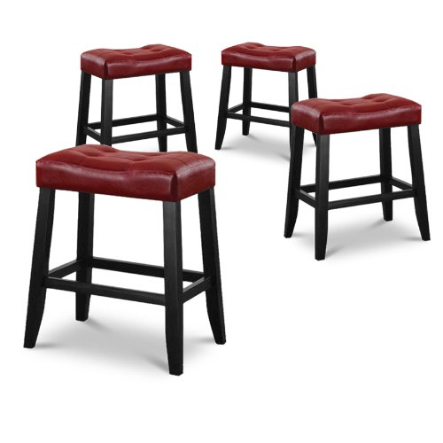 -. Brand : The Furniture Cove -. Color : red -. Feature : 4 24" Bar Stools / Black Finish with Red Cushion -. Label : The Furniture Cove -. Manufacturer : The Furniture Cove -. ProductGroup : Furniture -. ProductTypeName : HOME_FURNITURE_AND_DECOR -. Publisher : The Furniture Cove -. Studio : The Furniture Cove -. Title : 4 24" Red Cushion Saddle Back Kitchen Counter Bistro Bar Stools
