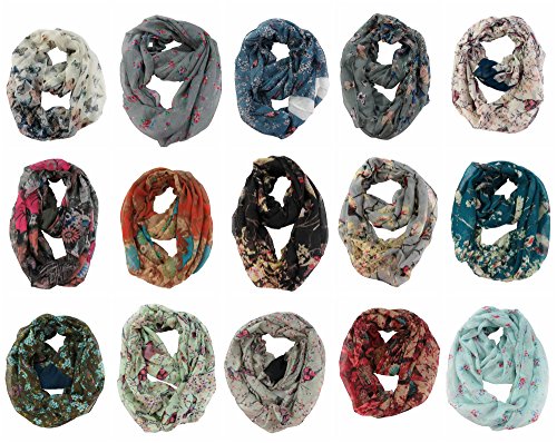 (WholesaleSarong)/Accessories/Cold Weather Accessories/DIRECT FROM USA/10 pieces infinity scarves flower butterflies birds wholesale cowl loop scarf