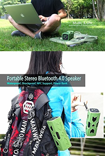 Bluetooth Speaker, IPUTY Waterproof Sports Speaker, Portable Wireless Bluetooth Speaker Bass Subwoofer Sound Speaker Bluetooth Speakers 4.0 with NFC Built-in Microphone(Green)
