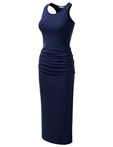 Doublju Stretchy Cotton Racerback Tank Maxi Dress For Women With Plus size (Made In USA)