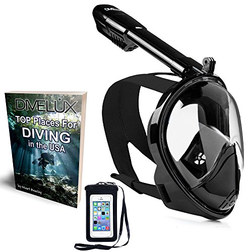 DIVELUX Snorkel Mask - Full Face Snorkeling and Diving Mask with 180° Panoramic Viewing - Longer Ventilation Pipe, Watertight, Anti Fog & Anti Leak Technology, S/M, L/XL (Black, L/XL)