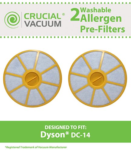 2 Highly Durable Washable & Reusable Dyson Style DC-14 Pre-Filters; Compare to Dyson Part No. 905401-01; Designed & Engineered by Think Crucial