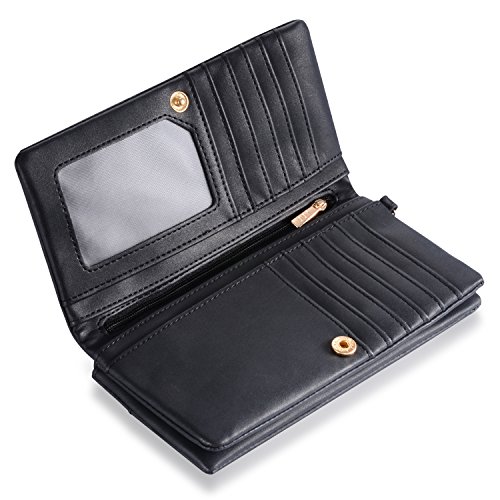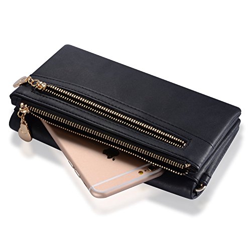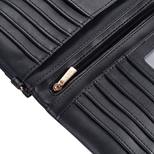 Title : Augur Women's Matte Leather Wristlet Clutch Wallet with Wrist Strap Card Holder Evening (Black)