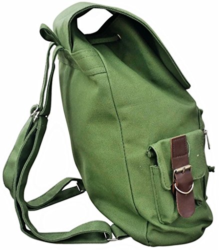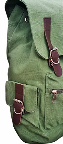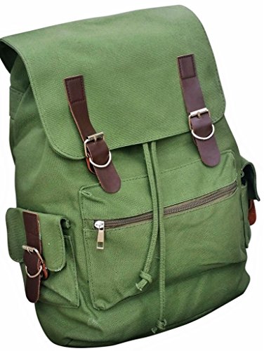 AM Landen®Canvas Backpack School Bag Travel Bag(Med, Green/Leather Straps)