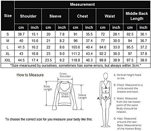 US M----Shoulder 40cm/15.6"-------Sleeve 21cm/8.19"---Chest 96cm/37.44"---Waist 77cm/30.03"