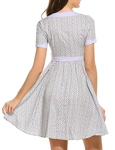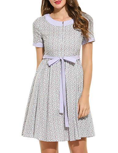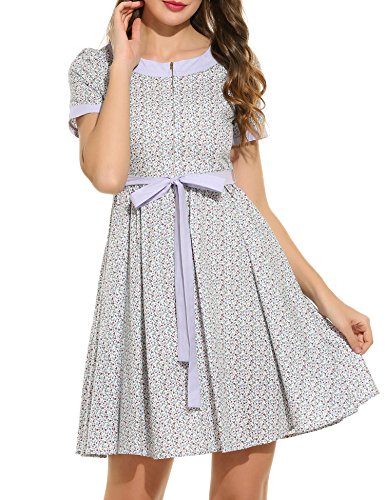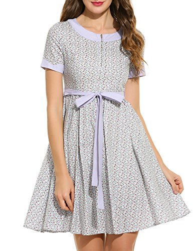 Features:Bow Belt,Classic,Retro,Vintage,Corset Tie, Short Sleeve, Audrey Hepburn Style, 50s,40s, Quick Access Zipper for Easy On and Off, Floral Print.Perfect for Daily Casual, Pinup Look, Cocktail Party, Christmas Party or any Special Occasion