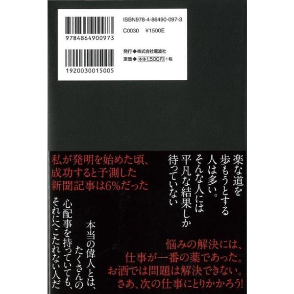 【商品説明】 定価(税込み):1,620円 値引き:10% OFF あなたが何も持っていないのなら、小学校を3か月で中退したエジソンに学べ!・絶対疲れない仕事術・超効率勉強法・成果を100倍にする力・ひらめき脳の作り方・人生をあきらめない技術・失敗する勇気やっぱりエジソンは、カミってた! バーゲンブック 新品 特価 格安 ビジネス 経済 ビジネス読み物 経営者評伝 評伝 読み物 経営 トーマス | |