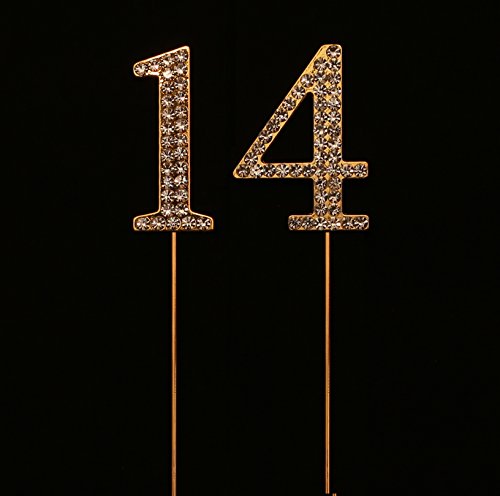 - MULTIPLE USES AND A KEEPSAKE: Use this as a cake topper for 14th birthday or anniversary, a centerpiece, part of a floral arrangement or place setting. Remove the metal prongs after the party and save this as a keepsake. This is a must have bling cake topper for your birthday or anniversary party decoration.