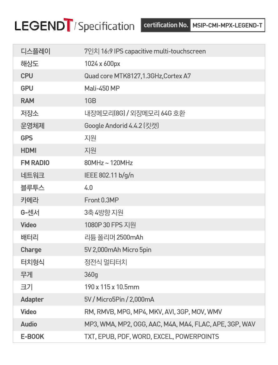 [MPGIO]LEGEND T Mpgio Ips 16:9gb Tablet 7 inch IPS Panel