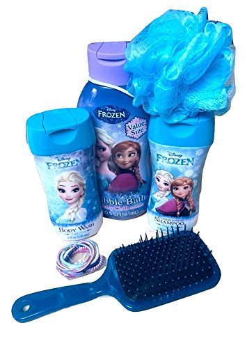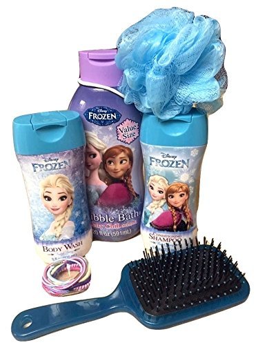Disney Frozen Bath & Body Gift Set is great for gift giving and is the perfect set with everything included to keep your body clean and smelling great. Perfect gift for Christmas get well, just because, birthdays, easter. • Disney Frozen Bath & Body Gift Set • (1) 20fl oz (591 mL) Cherry Chill Scented Bubble Bath • (1) 8 fl oz (236 mL) Frosted Berry Body Wash • (1) 8 fl oz (236 mL) Frosted Berry Conditioning Shampoo • (1) large paddle brush, (1) sponge, & hair tiesFeature