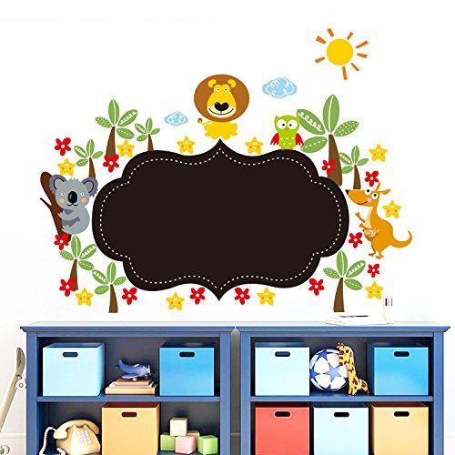 Woodland Arts 26" x 20" Cute Lions Koala Owls Kangaroo with Baby Chalkboard Bush Grasses Plants Vinyl Wall Decals Wall Stickers Kids Drawing Painting Blackboard Removable Decals for Kids Rooms Nursery