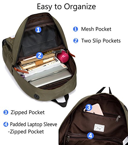 Product Description KASQO is about the casual, active, the discovery of life and adventure. We're dedicated to innovate and produce durable, functional comfortable gear that fits you and your life. Description: with your must-haves packed inside this classic backpack from KASQO.The Kasqo school backpack is made from durable nylon fabric and features a large shape with a classic silhouette that includes a zip around main compartment and a separate front zipper pocket to hold small accessories, school supplies, and personal items. Detailed with a padded laptop sleeve, fits most 15inch laptops. This laptop backpack includes a roomy main compartment, a padded bottom panel for added protection, and adjustable padded shoulder straps that make it comfortable to carry. This is a great backpack for your busy life. Exterior Dimensions:?W30XD14xH47CM/ 12X5.5X18.5IN Laptop Sleeve Dimension: W30XD3XH27CM/11.8X1.2X10.6IN Weight:?0.72KG,Capacity:?19.7L ,Material: Nylon WARRANTY KASQO product is warranted to the original owner for ONE year against the defects in materials or workmanship under normal recreational use. If your KASQO product fails due to a material or manufacturing defect we will repair or replace the product at our opinion. 0