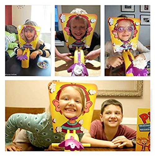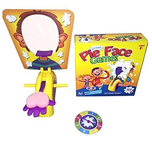 Studio : Pie Face Publisher : Pie Face Binding : Toy Product Description The exciting Pie Face game is filled with fun and suspense, and somebody's bound to get splatted! Just put some delicious whipped cream from home or the wet sponge on the "hand" of this hilarious game unit and start turning the handles. It could go off at any time, so keep your fingers crossed and hope you're not the one who gets a splat in the face! You score a point for every time you turn the handle without getting pie-faced, and the one who scores 25 points wins. Take some risks and hope for the best in this hilarious Pie Face game! How to use: 1.Install the Pie Face Game by yourself 2.Put some water or cream on the sponge 3.Turn the handles according to the figure showed on the turntable (if the hand point to the figure 1/2/3/4, you need to turn the handles for 1/2/3/4 time; if the hand point to "X", meaning invalid, then pass to next one; if the hand point to "U", meaning U turn, then play in reverse direction ) 4.Slap pop up, game over, next turn start 0