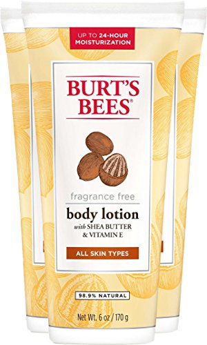 Hypoallergenic Burt's Bees Fragrance Free Shea Butter and Vitamin E Body Lotion nourishes all skin types, including sensitive skin, without irritation. Dermatologist-tested and clinically proven to moisturize skin up to 24 hours. Formulated with known soothing extracts, Chamomile, Calendula, St. John's Wort, Rosemary, and Linden Flower and enriched with hydrating Shea Butter and Vitamin E. Non-greasy and quick absorbing, this 99% natural fragrance free body lotion leaves skin soft, smooth and healthy, naturally.