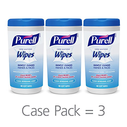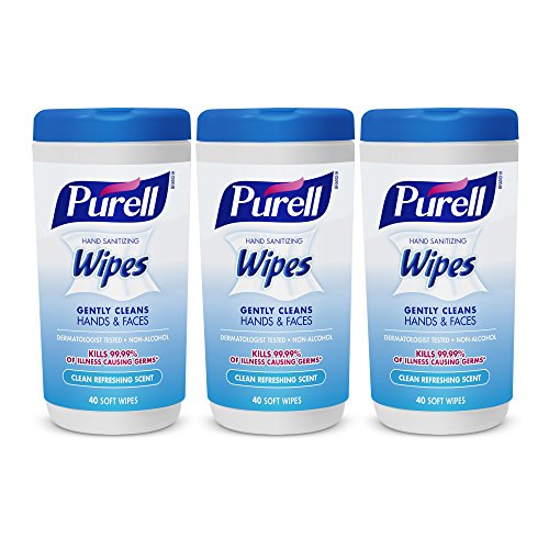 PURELL Hand and Face Sanitizing Wipes - Clean Refreshing Scent, Non-Alcohol Wipes, 40 Count Canister (Case of 3) - 9120-03-EC