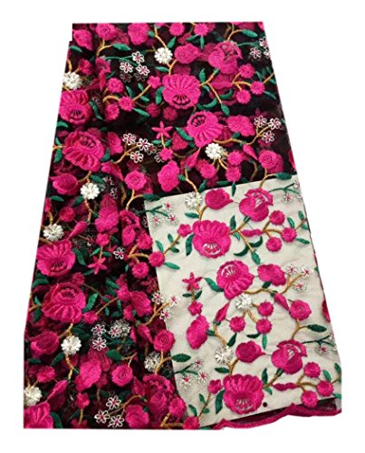 SanVera17 African Lace Fabric 5 Yards Nigerian French Net Lace Beaded Tulle Fabrics Guipure for Wedding Dresses us-fabric-087 (rose)