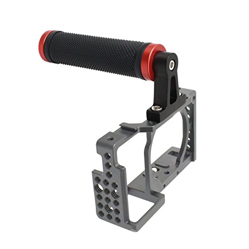 -. Feature : 特徴:カメラケージにマウントトップハンドル、M6ネジホール(穴)が付き、M6ネジも付き。色々な接続が可能です。 / ハンドル部分は滑り止め加工で、安定性と耐久性が良いです。 / グリップがやわらかくて長時間撮影しても手が痛くなりません。 / カメラをしっかり固定することができます。安全性が高いです。 / アルミニウム合金とラバーの材質で、フレキシブルかつしっかりしています 。軽量で丈夫で長持ちます。