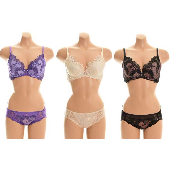 꾸뜨르만의 고급스러운 자수를 매치한 부직포패드 브래지어,레이스팬티 세트제품 입니다.