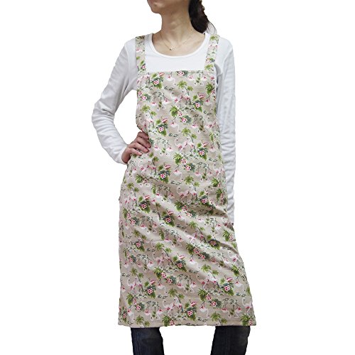-. Title : 日本製 キッチン エプロン バッククロス フラミンゴ