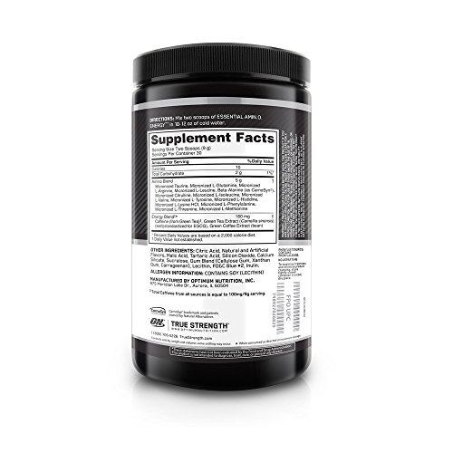 Optimum Nutrition Amino Energy with Green Tea and Green Coffee Extract, Flavor: Blue Raspberry, 30 Servings