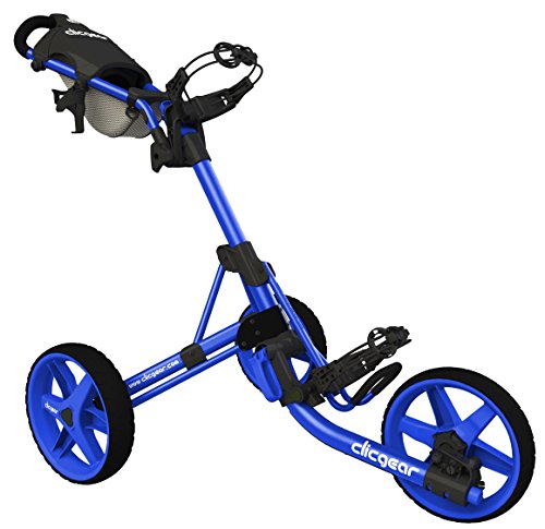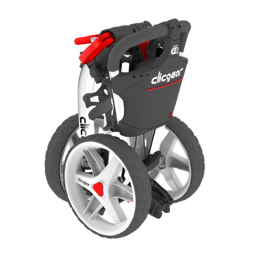 Beginning in Fall 2006, Clicgear has been producing high quality 3-wheel push carts. Since earning the “Best New Product” at the 2007 PGA Merchandise Show, Clicgear has spent the past 5 years establishing itself as the premier compact 3-wheel push cart. 2013 brings the introduction of the new Model 3.5+. Still compact and durable, the Model 3.5+ incorporates 5 upgrades; 1).50% larger storage net 2). Larger cup holder 3). New bag strap system 4). Improved Umbrella Holder bracket and 5). Improved brake system. All Clicgear carts offer a 3 year warranty on the frame and a 1 year warranty on all parts. Clicgear also offers a wide assortment of push cart accessories. The one consistent with the Clicgear is the compact folded dimensions. Still measuring just 13”X15”X23”, the Clicgear Model 3.5+ is the original compact push cart. Additional standard features include: Oversized Console (Included scorecard holder, ball holder, pencil holder and tee holder) Independent Handle Adjustment (Allows cart to maintain full tired width when handle is adjusted down) Built-In Accessory Mounts (Holds Clicgear designed accessories) Adjustable Bag Saddle System (Accommodates all bag sizes) Built-In Umbrella Mount (Umbrella holder comes standard with all carts)Feature