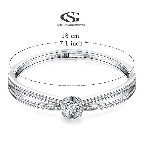 ♪Wearing Experience♫7 inch crystal bangle bracelet.Stone:Swarovski Crystals and Cubic Zircon Diamonds|Metal Type: 18K White Gold Plated&Eco-friendly Copper,Lead-Free & Nickle-Free. Crystals are supplied by Swarovski but the jewelry belongs to GEORGE SMITH,Not Swarovski.