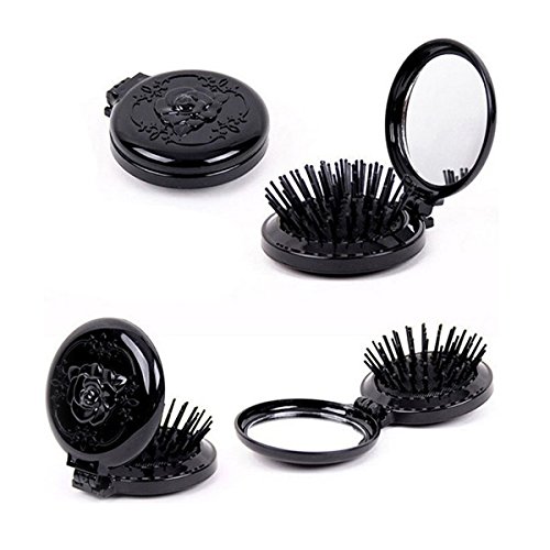 Pixnor Hair brush Mirror Compact Round Folding Makeup Mirror