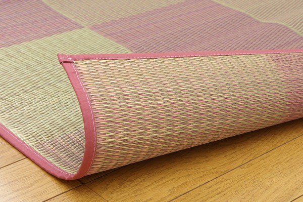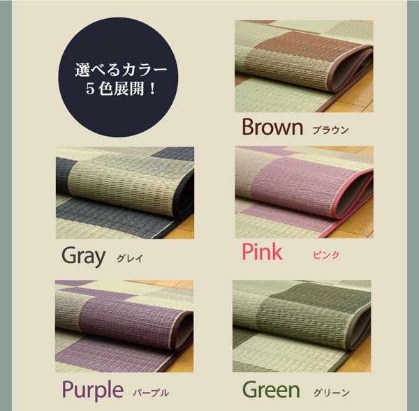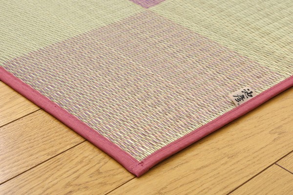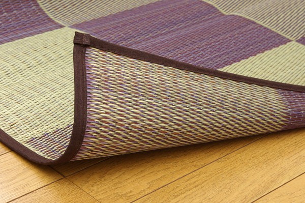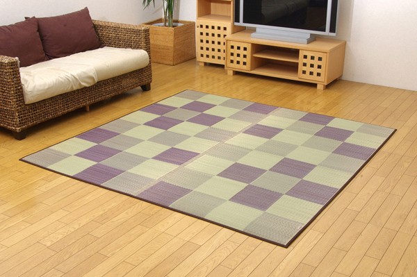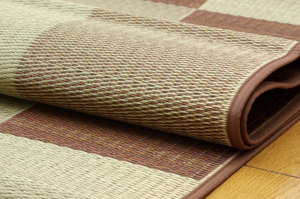 シンプルで飽きのこないブロック柄のい草カーペットです。国産(九州産)のい草を使用しています。一本一本が太く、表皮が厚く繊維がキメ細かいので弾力性があり、耐久性に優れています。い草には空気の自然浄化作用、湿度の調節作用などがあります。また汚れにくく、使用するうちに黄金色に変化し味が出ます。い草に青森ヒバ加工を施しています。(抗菌、防臭効果)