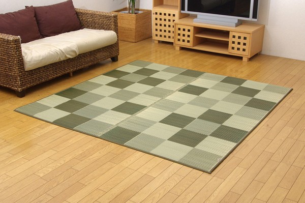 【商品名】純国産/日本製 い草ラグカーペット 『ブロック2』 グリーン 約191×250cm