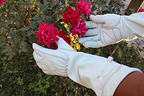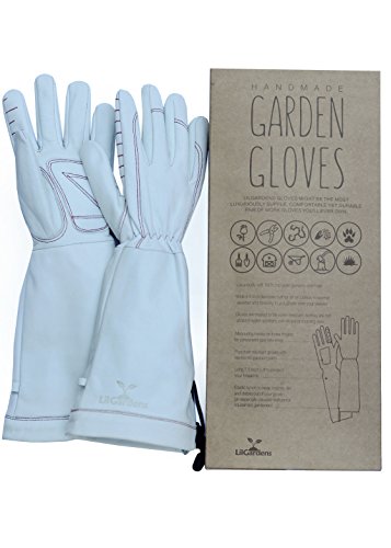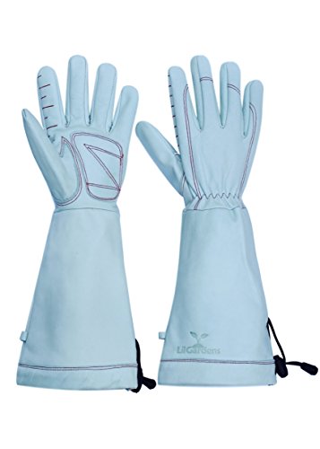 LilGardens Long Cuff Garden Gloves Top Grain Cowhide Puncture Resistant Water Resistant (Large)