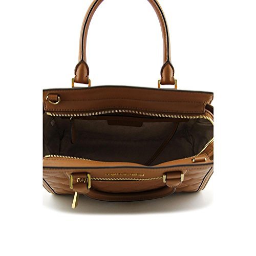 Signature faux leather Double handles with 4-1/2" drop; adjustable strap with 21"-23" drop Top zip closure Exterior features gold-tone hardware, signature name plaque and 2 slit pockets Interior features 1 large open pocket and 2 small open pockets 12-1/2" W x 10-1/2" H x 4" D Model is approximately 5'9"Feature