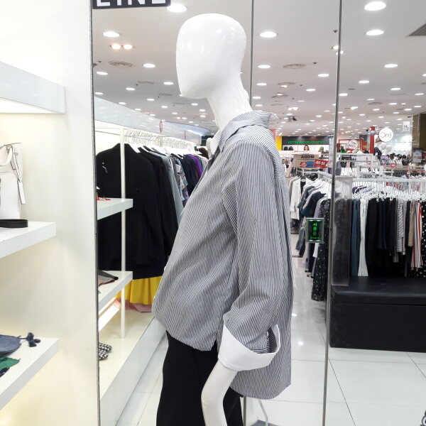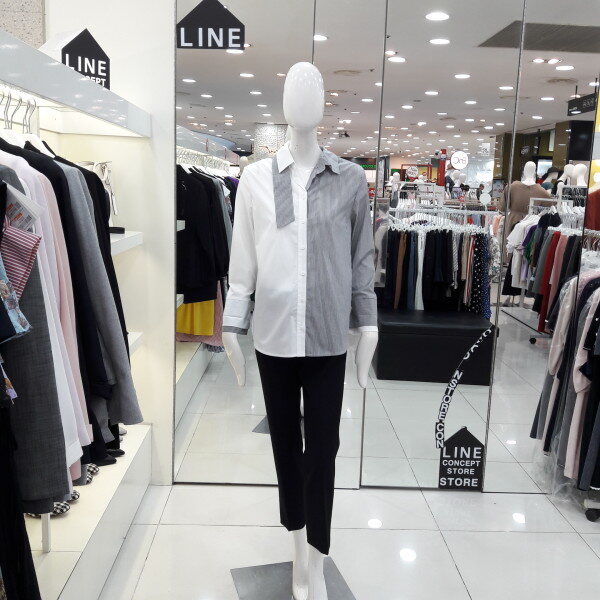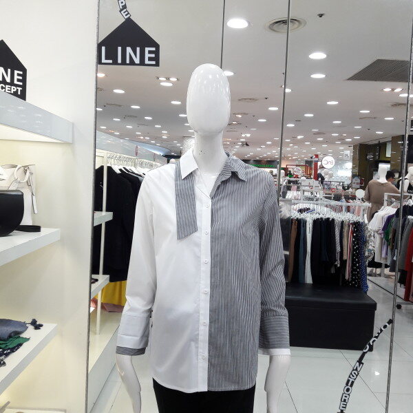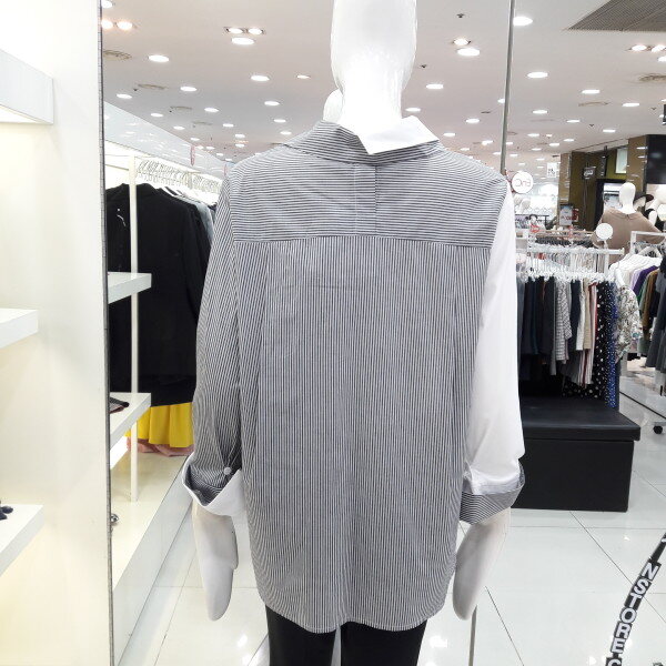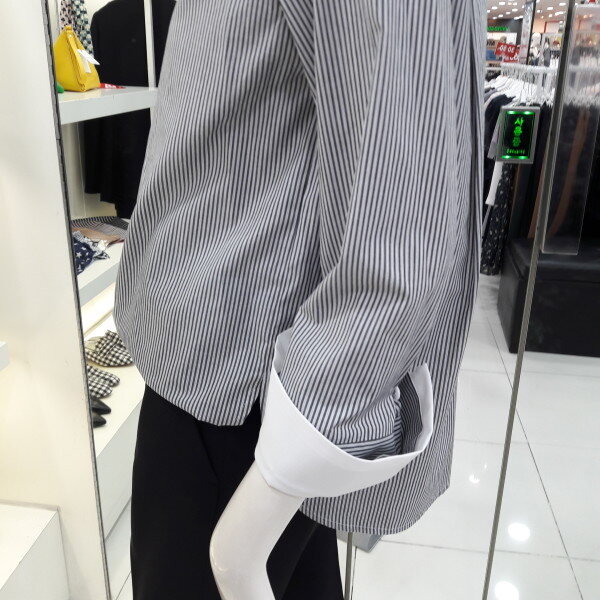 18년 신상 스트라이프 셔츠입니다 유니크한 디자인에 두가지 패턴으로 세련되면서도 여성스러운 스타일입니다 소매단을 살짝 접어입으셔도 되는 디자인으로 슬랙스에 멋스럽게 연출해보세요