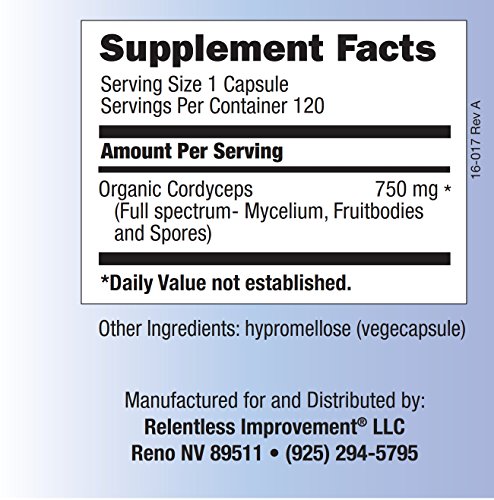 -. Title : Relentless Improvement Cordyceps | NO FILLERS | Full-Spectrum Mycoproduct | 750mg 120 vegecapsules