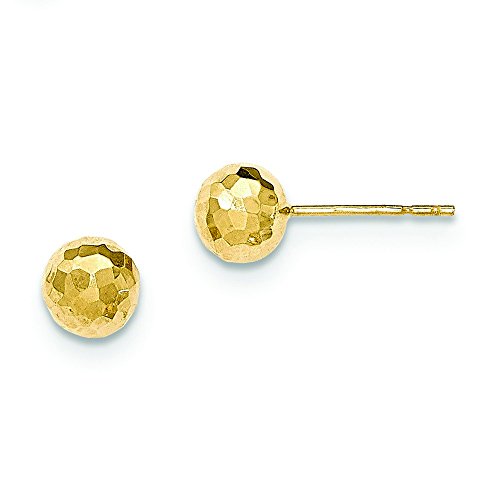 14k Yellow Gold Polished and Diamond-cut 7mm Ball Post Earrings - in 14k Yellow Gold - JewelryWeb Style: QTE290383Y - FREE gift-ready jewelry box