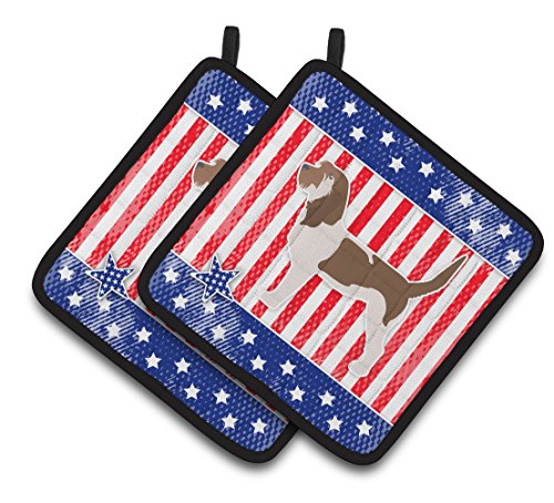 Caroline's Treasures USA Patriotic Grand Basset Griffon Vendeen Pair of Pot Holders BB3290PTHD, 7.5HX7.5W, Multicolor