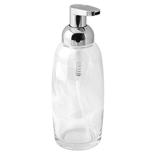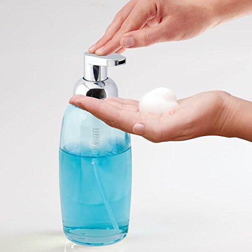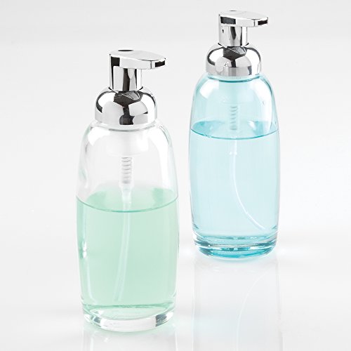mDesign Glass Foaming Soap Dispenser Pump 2pc Bathroom Accessory Set - Blue/Chrome, Clear/Chrome