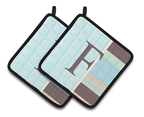 Caroline's Treasures Letter F Initial Monogram - Blue Stripes Pair of Pot Holders CJ1003-FPTHD, 7.5HX7.5W, Multicolor