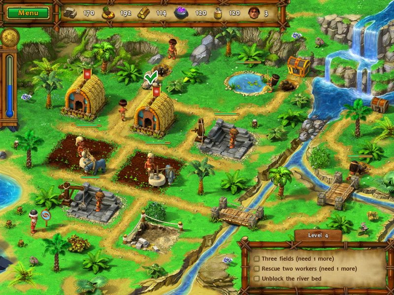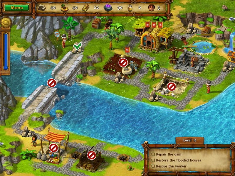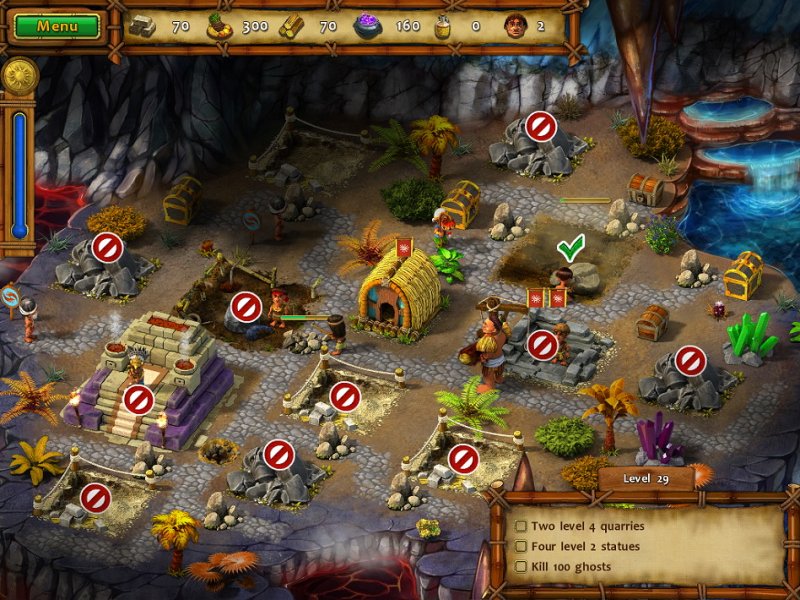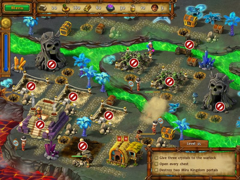 A long time ago, in a land far away, a king ruled with his queen in peace and prosperity. Then one day, a dark force kidnapped his beloved and left a path of destruction in its wake. To save his beloved, the ruler must take up arms and pursue his adversary across three magical realms. He must also take up a hammer, a hoe, and a pickaxe so he can rebuild the homes and the lives of his people! You control the destiny of this heroic ruler and his people. To succeed, you'll need to gather food and other resources, and then use them wisely to finish the tasks that lie before you. You'll also need to defend your people against evil henchman and bizarre supernatural enemies. Use strategy to complete tasks quickly, and a slew of achievements will be yours! With adventure to spare, an inspiring story of destiny, and gameplay that will hold you in a grip of excitement, Moai 2: Path to Another World is an instant classic!