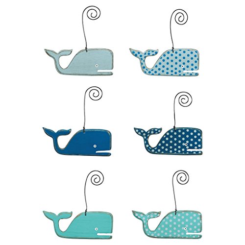 - Charming set of 6 wooden whale hanging ornaments