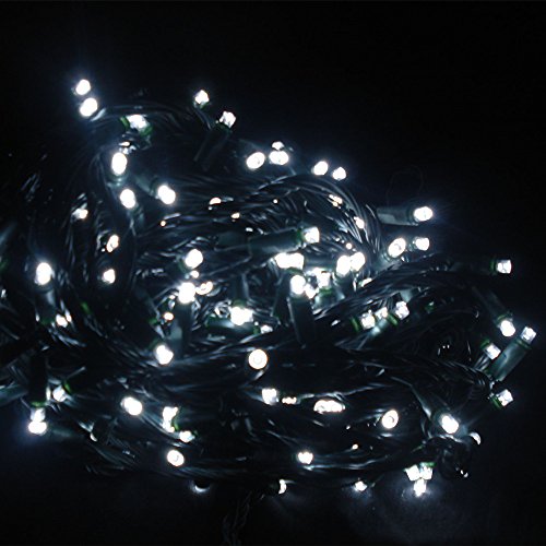FEITA LED Mini Christmas String Light Set 100 Lights Cool White, 39'Long, Outdoor Lighting Party Patio,Tree wrap,Patio Garden,Home Decor Lights with Wide Angle Bulb (5mm), Green Wire, 34 Feet