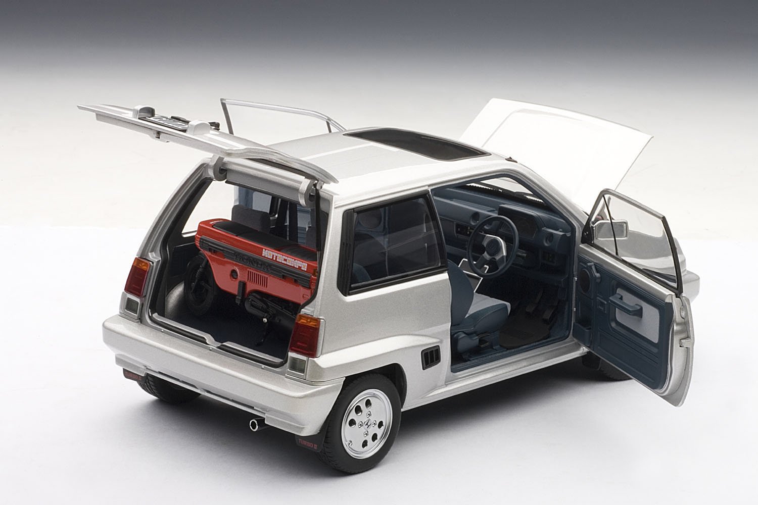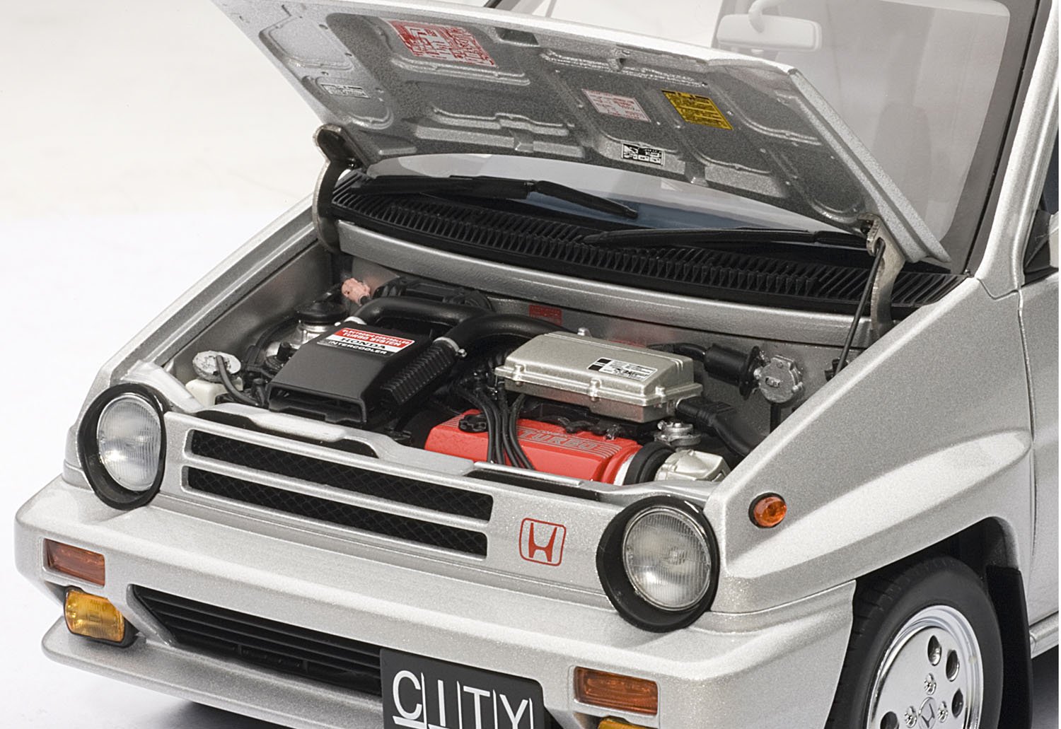 AUTOart 1/18 scale Honda City Turbo Silver Special Limited Edition bonnet, door, trunk opening and closing possible, motocompo (red) mounting 【Special Limited Edition contents】 ● Iron bull Figgear included ● Dedicated display case included (acrylic clear case + name entry base)
