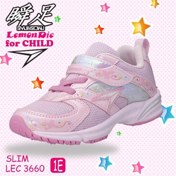 お子様のシューズは足長だけではなくて足囲も重要!!可愛らしい色合いと蝶のデザインが、おしゃれな女の子の足元にピッタリ。足にフィットする瞬足レモンパイで、さらに速く走っちゃおう♪内側かかと部分に名前スペースがあります。 |